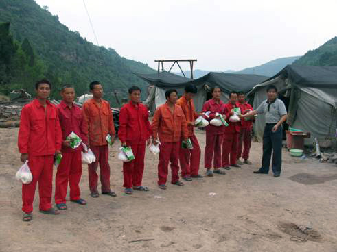 圖為7月7日,隊(duì)工會(huì)主席解北平一行在陜北工程處韓城施工項(xiàng)目現(xiàn)場(chǎng)為職工“送清涼”時(shí)的情形。(魏兵)