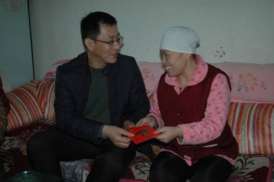在困難職工郭金林家中,劉建勤總經(jīng)理詳細(xì)詢問(wèn)了他的身體和家庭情況。劉建勤親切地拉著他的手說(shuō):“新年快到了,我代表地礦總公司黨政工來(lái)給你拜個(gè)年,希望你多鍛煉身體,把身體保養(yǎng)好”。在困難職工祝蘭英中,劉總關(guān)切地詢問(wèn)她的病情及家庭生活狀況,鼓勵(lì)她面對(duì)暫時(shí)的困難,要保持良好的心態(tài),配合醫(yī)生積極治療,早日恢復(fù)健康。