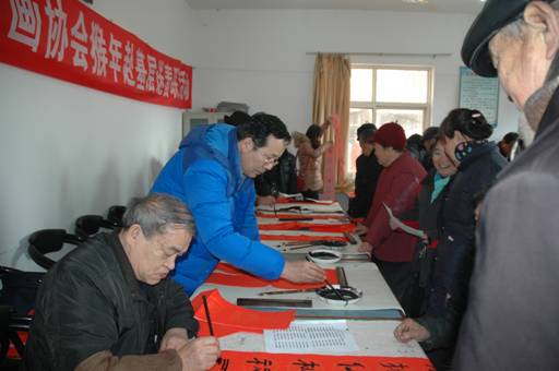 人們絡(luò)繹不絕地從商州城區(qū)、東龍山趕到家屬院,領(lǐng)取春聯(lián),不僅給自家領(lǐng),還給親戚朋友們領(lǐng),書畫協(xié)會(huì)的同志們不辭辛苦,熱情服務(wù),對同志們的要求有求必應(yīng),還親自為他們挑選好的春聯(lián)。他們精湛的書畫水平得到了人們的高度評(píng)價(jià)。(隊(duì) 宣)