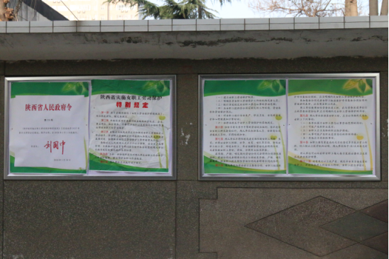 櫥窗宣傳《陜西省實(shí)施女職工勞動(dòng)保護(hù)特別規(guī)定》