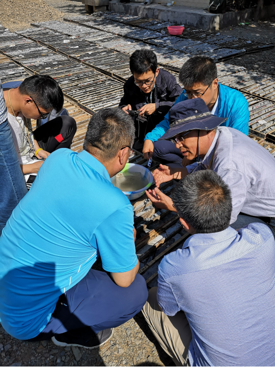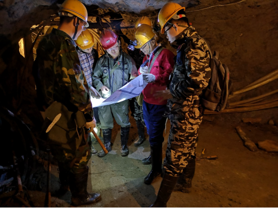 張德會老師一行在公司總工程師馮曉強(qiáng)等陪同下,首先到公司參加座談交流,聽取了野外項(xiàng)目組在生產(chǎn)工作中的思路和存在問題,并與公司技術(shù)專家和項(xiàng)目組進(jìn)行了充分溝通,接著先后前往柞水縣、鎮(zhèn)安縣、山陽縣等地進(jìn)行野外考察指導(dǎo)。每到一處工作點(diǎn),張老師身體力行做表率,上山、下井、鉆平硐;每觀察到一個(gè)典型地質(zhì)現(xiàn)象,張老師現(xiàn)場講解;每看到一條礦脈,張老師就帶領(lǐng)大家追根溯源,一探究竟。張老師對地質(zhì)事業(yè)執(zhí)著認(rèn)真的精神,深深地影響著在場的每一位地質(zhì)技術(shù)人員。